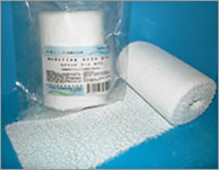 焼石膏を目の粗いガーゼに塗布しロール形状にした製品です。針金、ボール紙などを芯材として使用し、巻き付け硬化させれば丈夫な作品を作ることが出来ます。